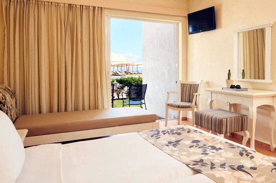 Apart from the bungalows, the newly renovated wing of rooms set amid the landscaped gardens offer a quiet escape from the stresses of life, only a two or three-minute walk away from the beach. They are the newest addition to the resort and offer all the amenities and services expected in a first-class Crete accommodation property. Enjoy soft colour tones, modern tiled floors, bathrooms and amenities such as hairdryer, toiletries, safe box, beach towels, flat-screen satellite television, Wi-Fi, mini fridge, individually controlled air-conditioning and more.